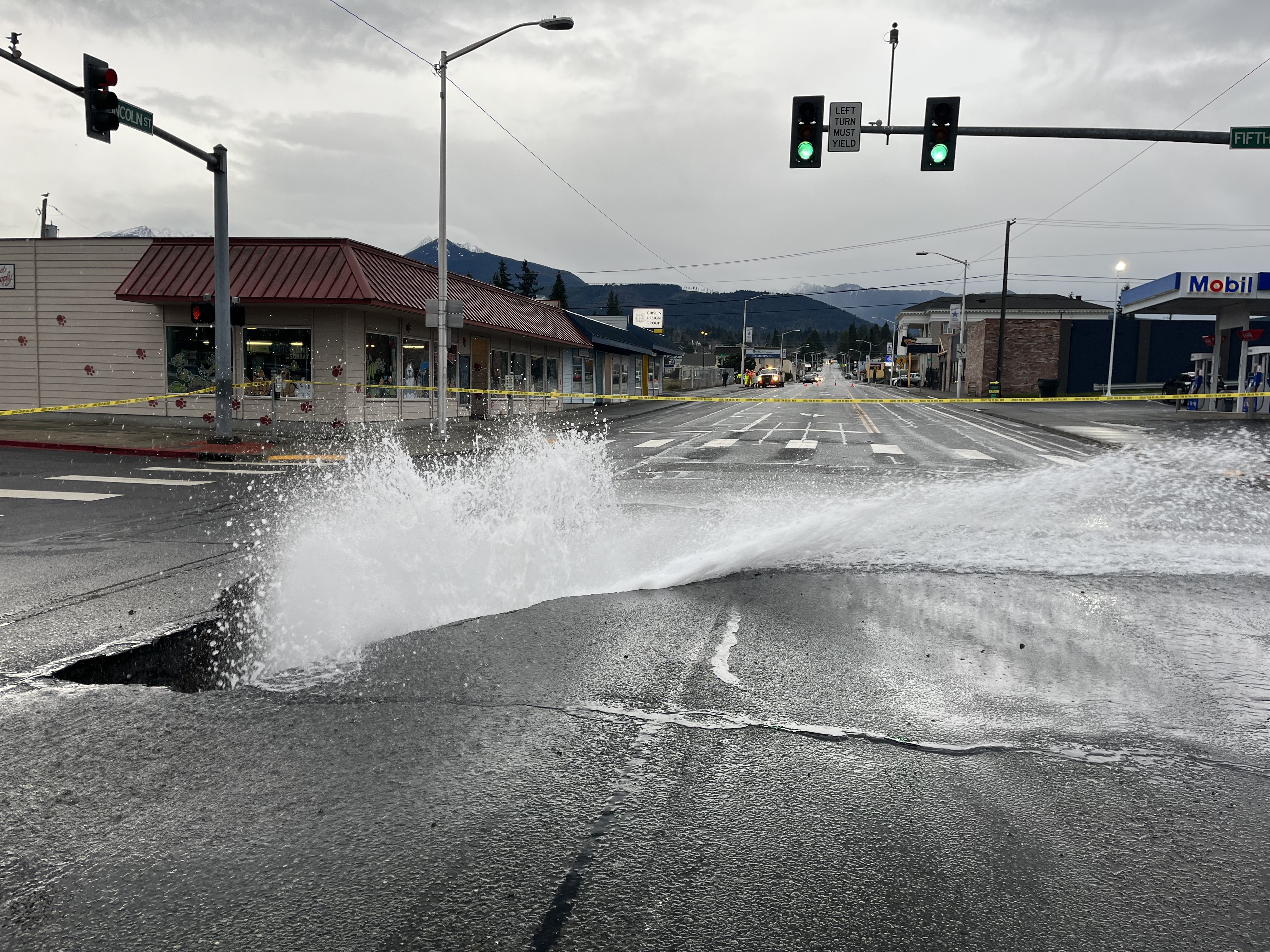 PORT ANGELES – A broken watermain created a large sink hole and shut down the entire intersection at 5th and Lincoln Streets in Port Angeles Wednesday morning.