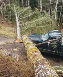 Because the tree and the power lines are on Olympic National Forest Service land along service road No. 30, federal officers responded to the scene. They found that the culprit hadn’t just dropped the tree over the power lines, he also dropped it on his truck and appeared to have fled the scene.