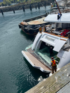 Watchstanders at the Columbia River command center received a radio call from the crew of the vessel at 6 a.m. Saturday, reporting the yacht was taking on water due to the transom door, which opens like a pickup’s tailgate, failing to close in rough seas.