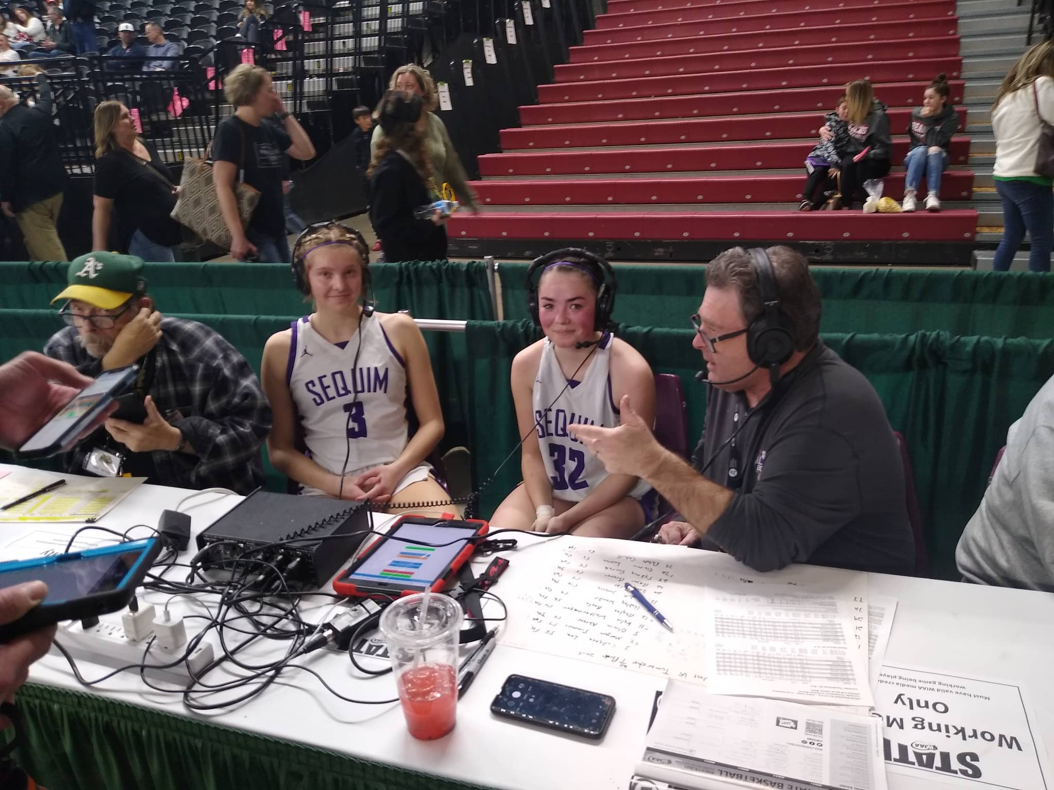 After the “Little General” Hannah Bates, as nicked name by Eric Tiejen KONP tournament color commentator, took matters in her own hands with the score tied at 32 and 11 seconds left. Bates took the ball right down the boulevard with a sweet kiss off the glass that fell into the mesh to make the biggest basket in the history of Sequim Wolves girls’ basketball. Othello still had 4 seconds left and they almost pulled of an incredible play to get a layup but that stories for another day. The final buzzer sounded and the Sequim players, fans and KONP Broadcast team went into a wild frenzy only up staged by the 4 state Champions that night.