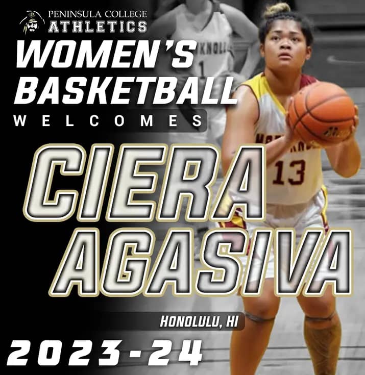 Peninsula Pirate women’s basketball coach Allison Crumb is at it again. After hauling in all-state basketball players, keeping three hometown stars and strip-mining Alaska of their gold nuggets, Crumb has now traded in her dog sled and parka for sun tan lotion and sun glasses. Crumb has gone into Mary Knoll High school in Honolulu, Hawaii and recruited a linebacker off the football team. Yes, you have read correctly, a linebacker. 5’8″ power forward Ciera Agasiva who was named the 13th best player in the state of Hawaii by the Honolulu Star Advertiser newspaper and is riding the “Hawaiian Express” all the way to Port Angeles. Agasiva actually played linebacker for her high school football team as a freshman but gave up it because she figured she could go farther in basketball!