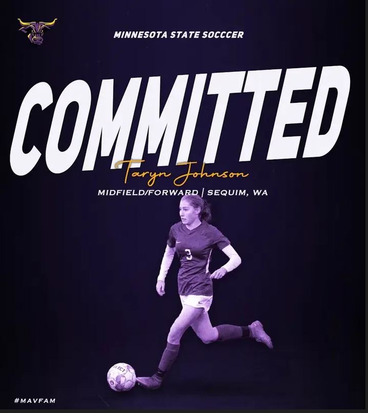The top high school soccer player on the Olympic Peninsula has signed her letter of intent. The “Dungeness Rocket”, Taryn Johnson of Sequim, has signed with NCAA D2 power Minnesota St of Mankato Minnesota. Mankato is a city of over 44,000 South West of Minneapolis. The Mavericks went 14-2-6 last year season making it to the 2nd round of the NCAA tournament. Minnesota State, formerly known as Mankato State, is also a national power in football and hockey.