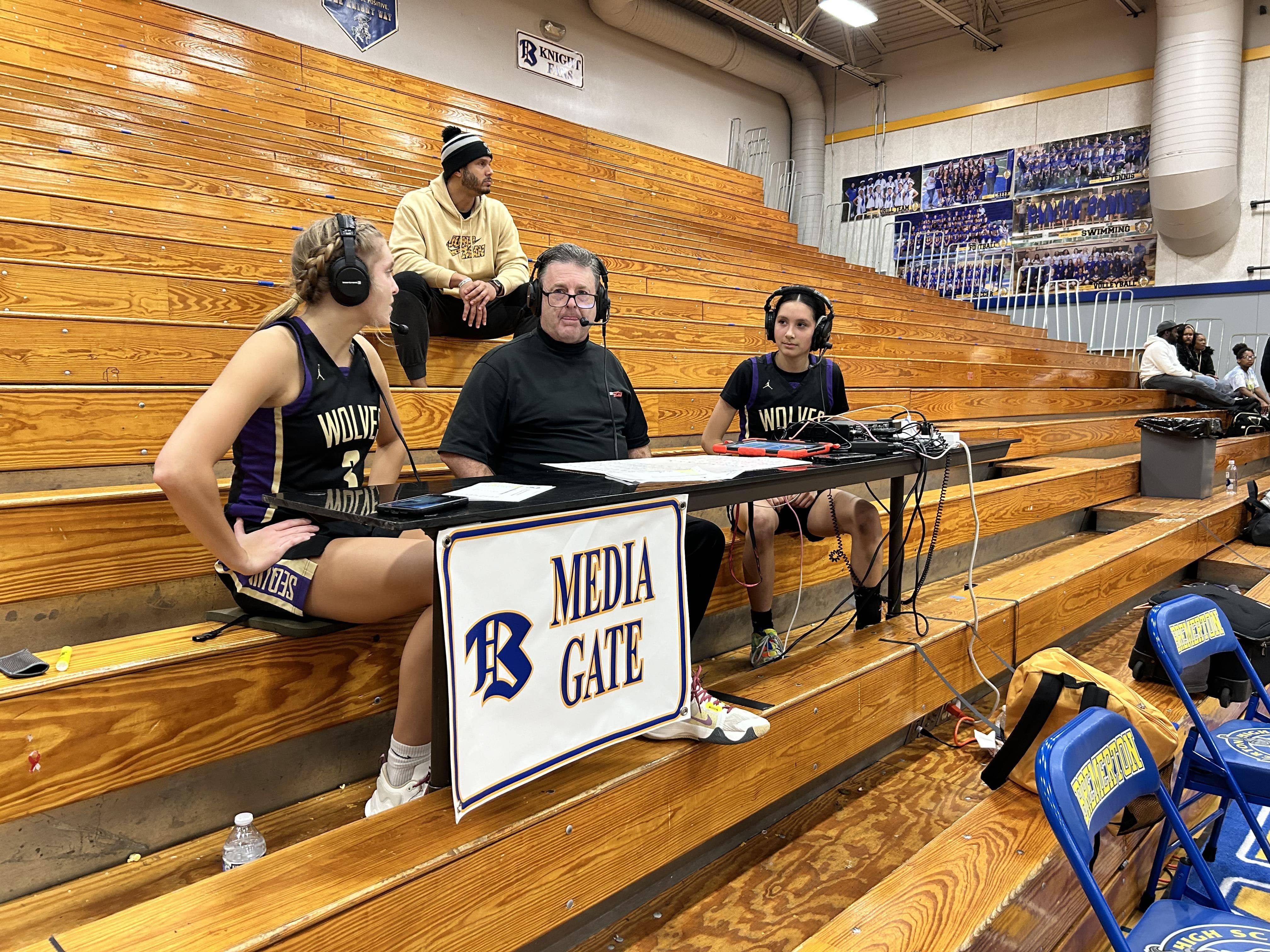 The Wolves Jolene Vaara and Gracie Chartraw on the KONP Newsradio Post Game Show at Bremerton. Vaara hit for 23 and Chartraw hit for 17