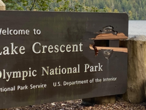 OLYMPIC NATIONAL PARK – Olympic National Park officials announced today that someone, trying to steal the arrowhead plaques that are adhered to some of the park’s most iconic entrance signs, has badly damaged those signs in the process.