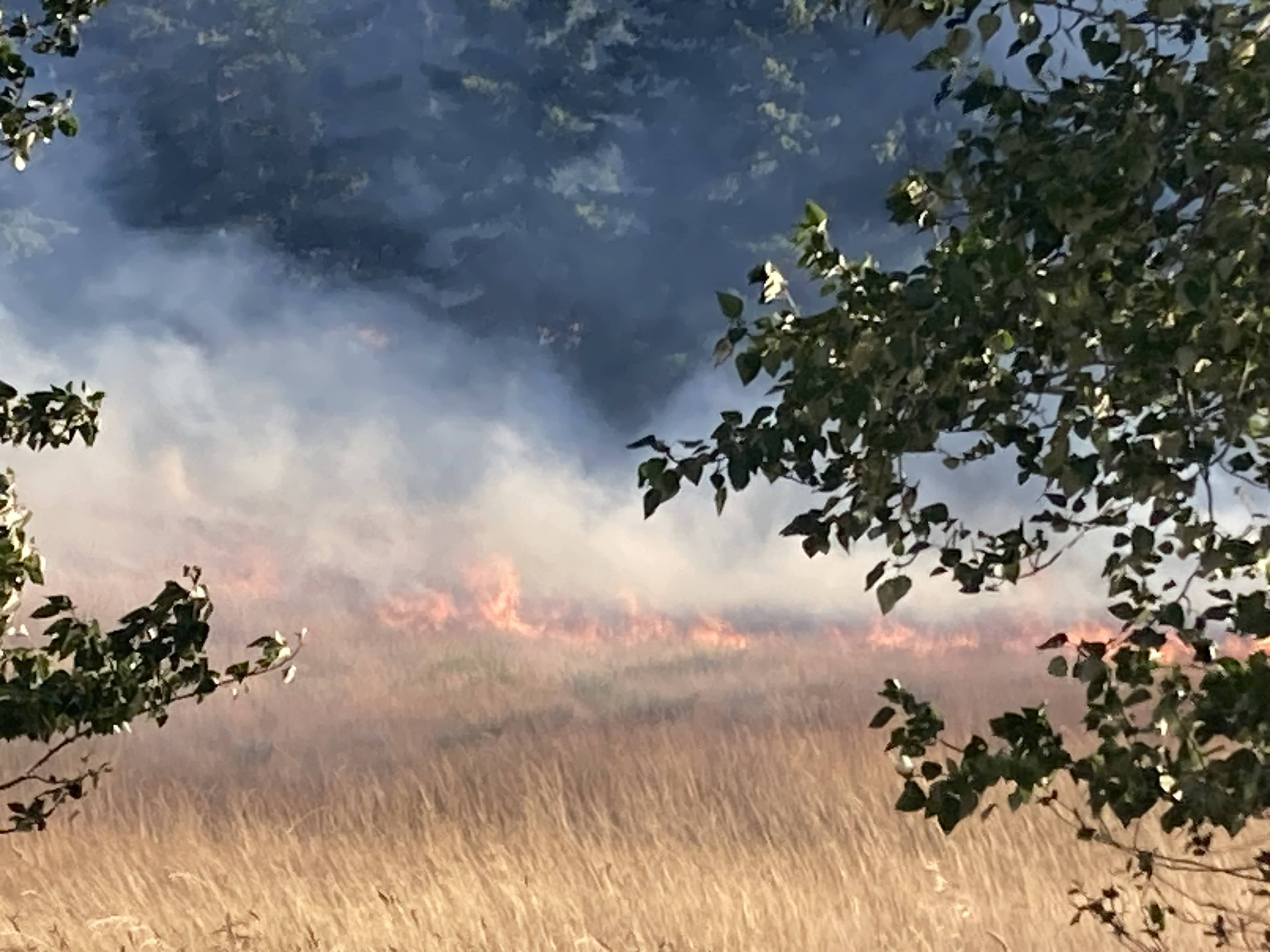The fire burned in a field near the 1700 Block of W. 14th Street. The initial report of smoke at 6:20 pm quickly escalated as flames, driven by wind, threatening nearby structures.