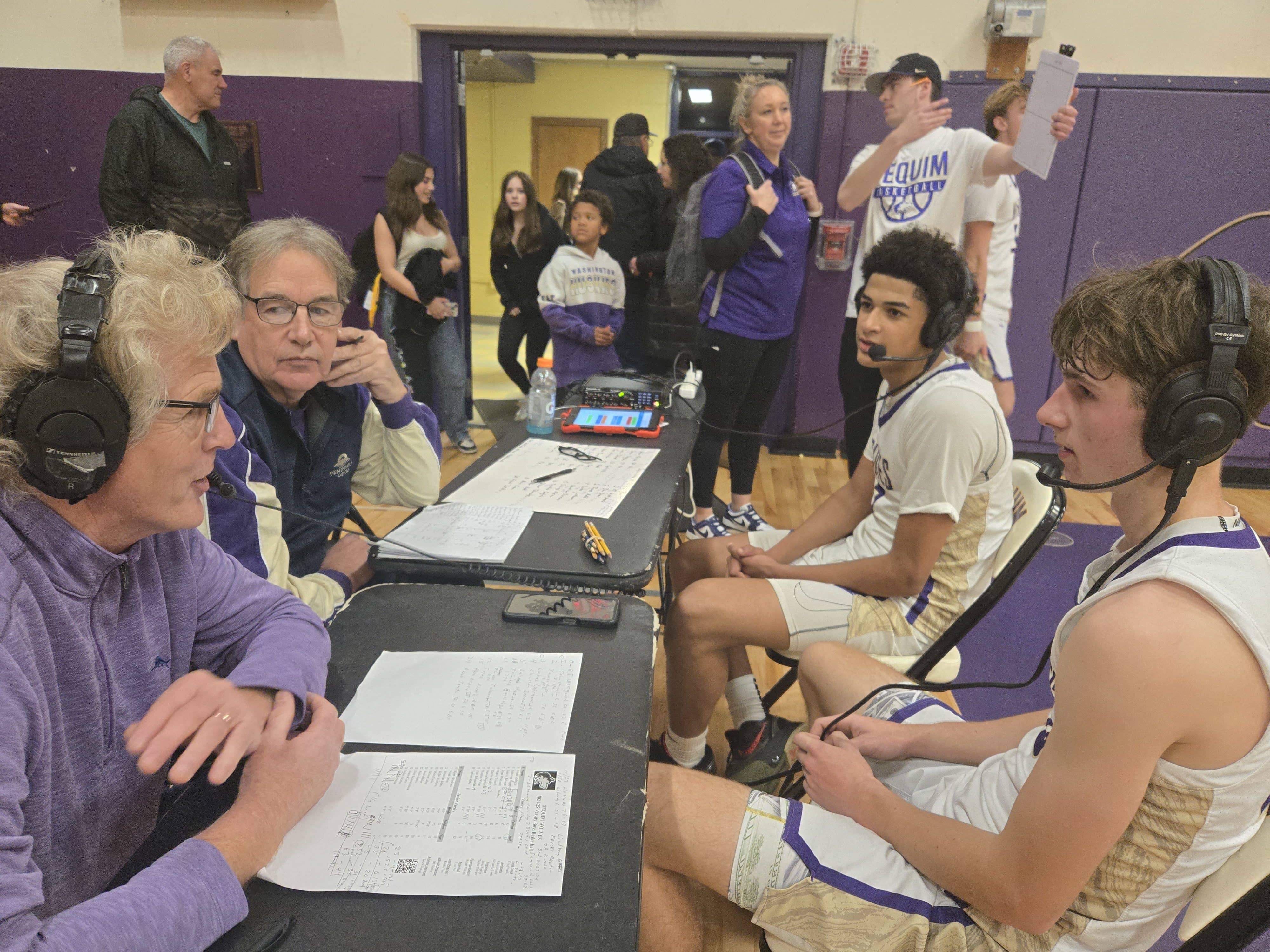 KONP radio broadcasters Joe Gladfelter and Greg Thomas interview Mason Rapelje and Solomon Sheppard after the Wolves 63-44 win over Lindbergh