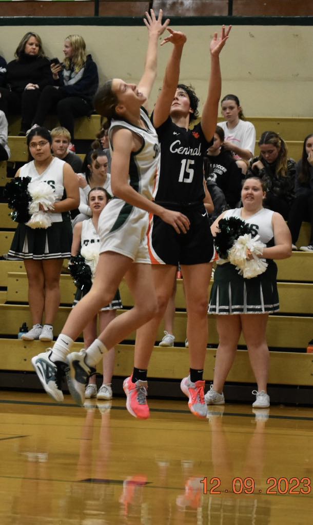 Roughriders’ 5’10” Sophomore Morgan Politika playing defense against Central Kitsap, is part of a Roughrider front line with height and experience