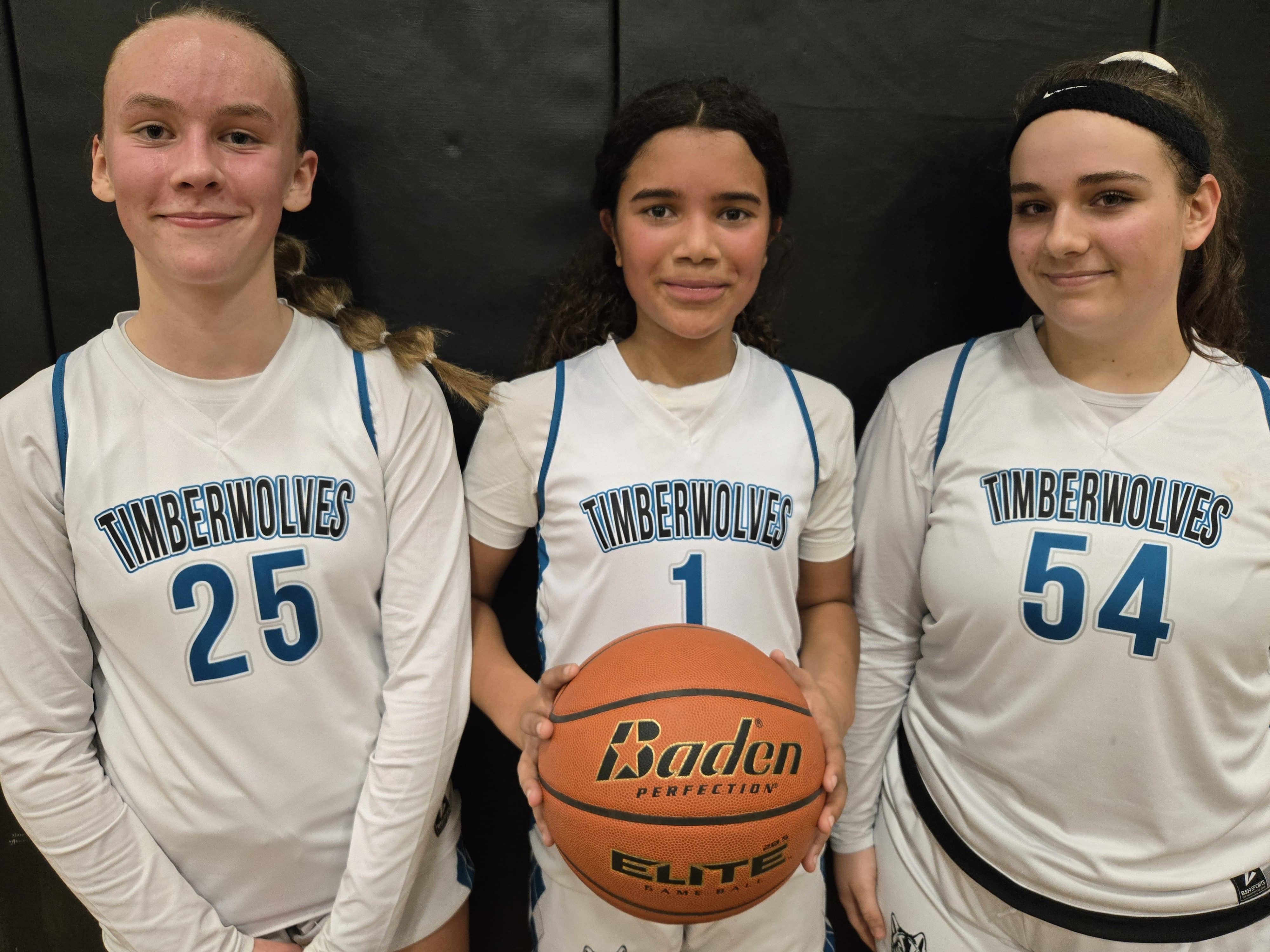 The Sequim 7th-grade backcourt of Lucy Greenwalt, Emmelia Henrickson, and Emma Bixby has the Wolves program in good shape.