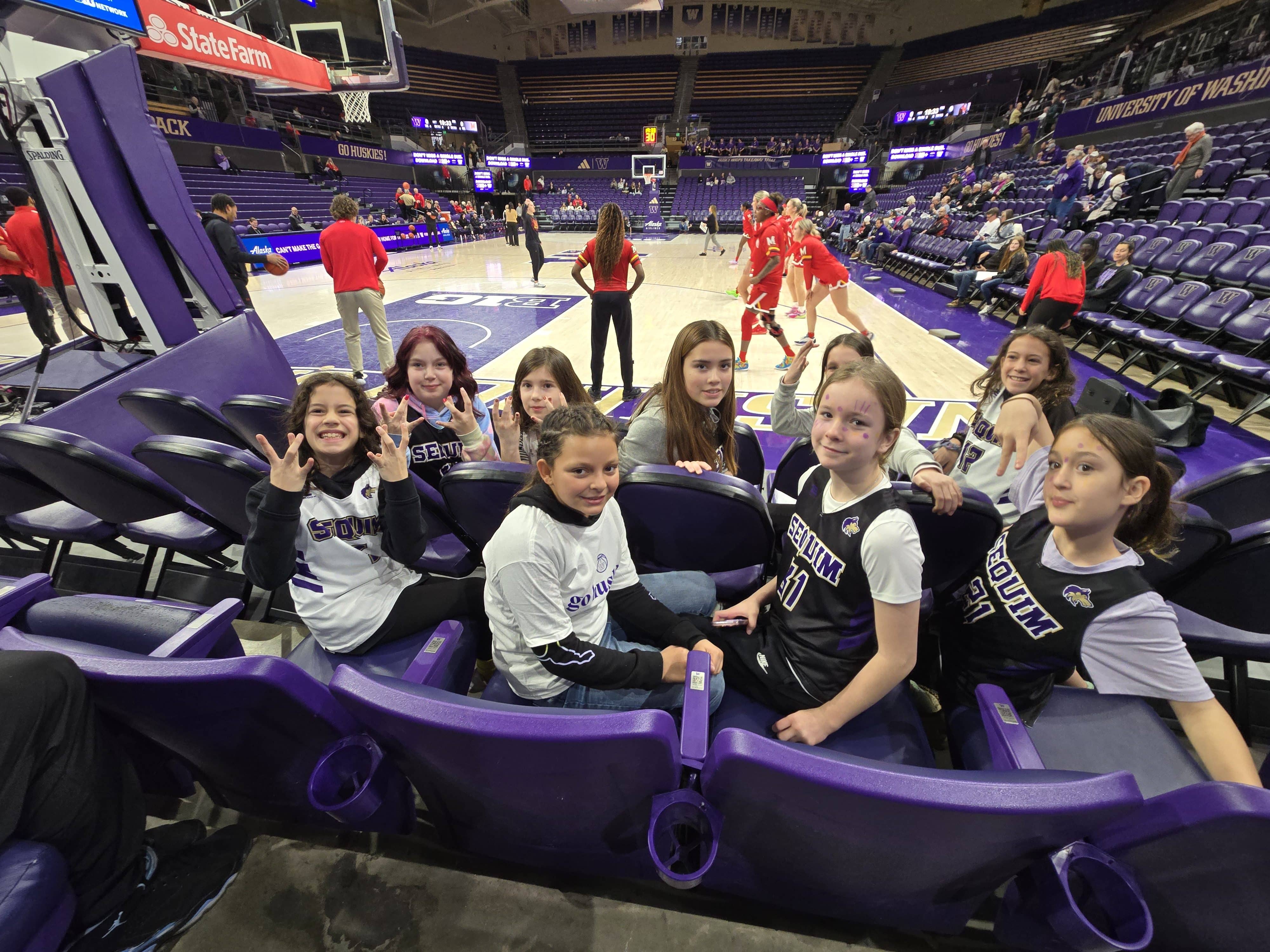 The Sequim 5th & 6th grade girls basketball team, attended the UW Husky game yesterday against 16th ranked Maryland. The Wolf Pups Marley, Ashtyn, Naveah, Mia, Macey, Gabby, Angelica, Ramey and Everly were on the floor daring the 16th ranked Teripans to take them on.