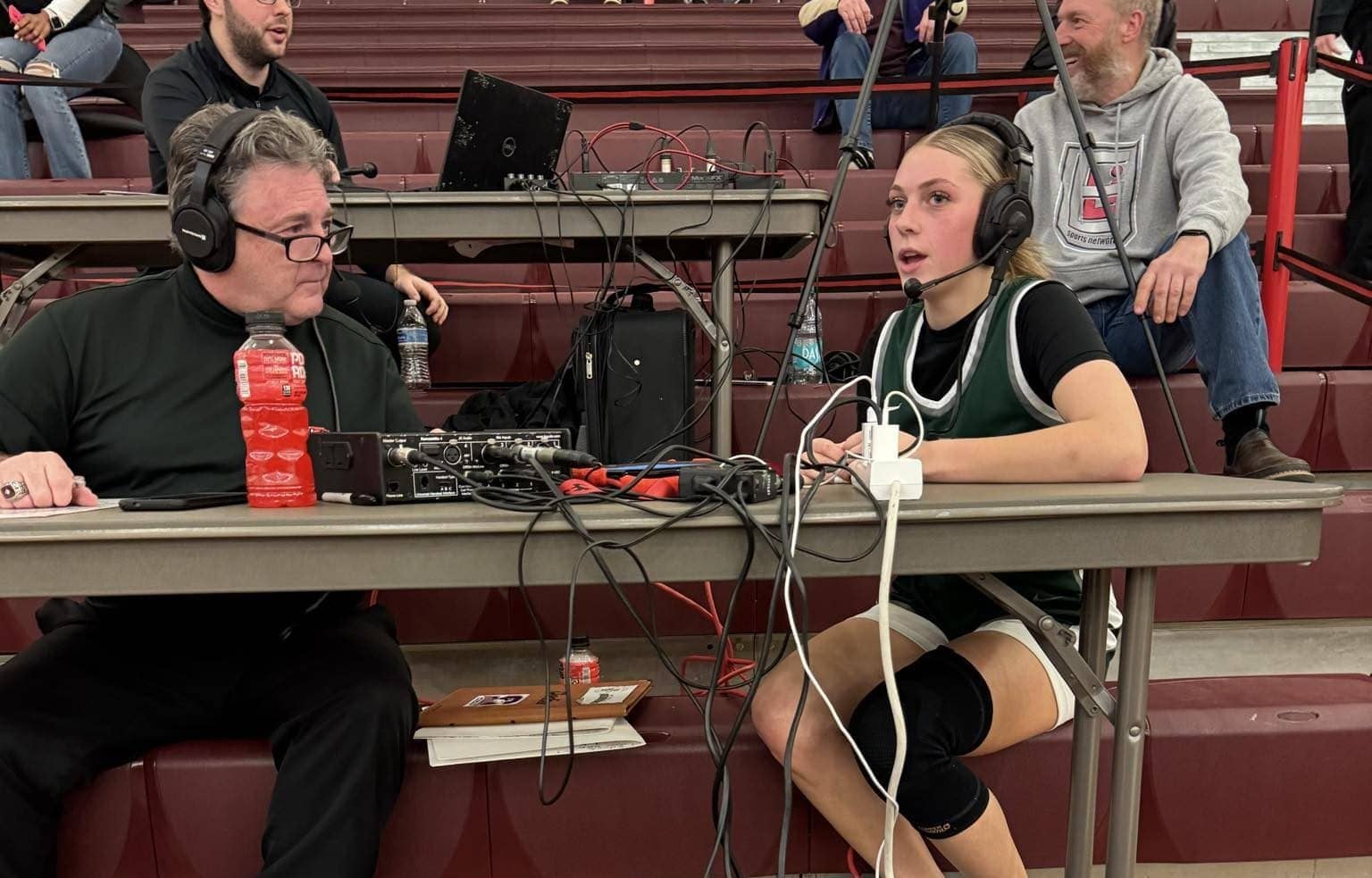 Roughriders Mikkhia Stevens and Morgan Politika were all smiles on the KONP postgame show after their thrilling 48-44 upset over Eatonville.