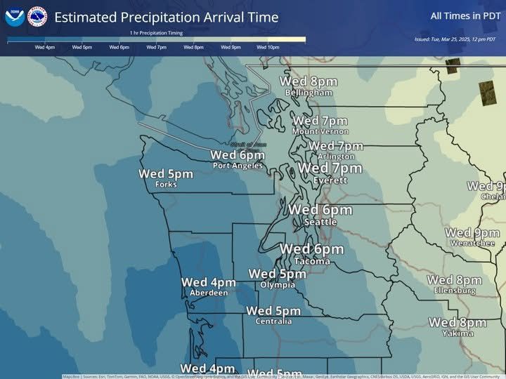 PORT ANGELES — North Olympic Peninsula residents should stay weather-aware Wednesday afternoon and evening as thunderstorms develop across Western Washington. Storms are expected to hit the Port Angeles area around 6 PM, bringing a chance of gusty winds, lightning, and brief heavy downpours.
