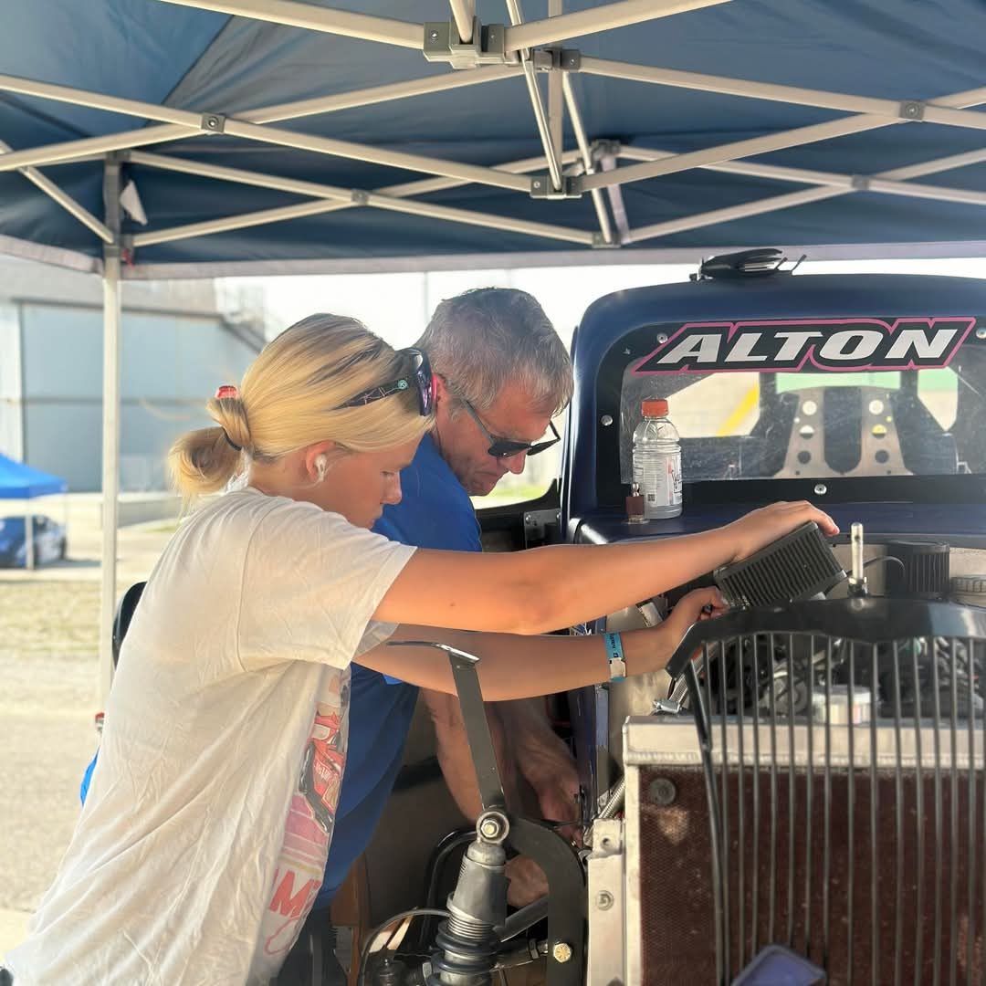 Pyper Alton, working on her #42 Legends sports car, had a successful opening night at Evergreen Speedway.
