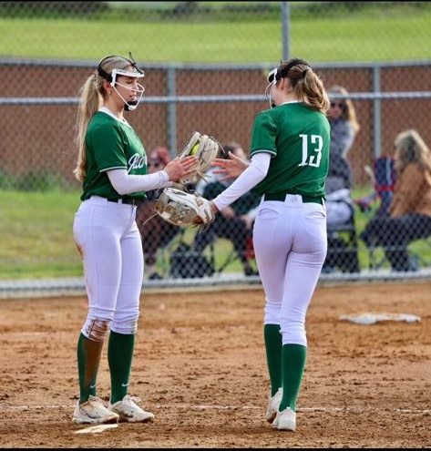 Roughrider shortstop #13 Morgan Politika congratulates pitcher Sophia Ritchie for earning the save against Bremerton. Politika also hit her first career home run as a Roughrider.