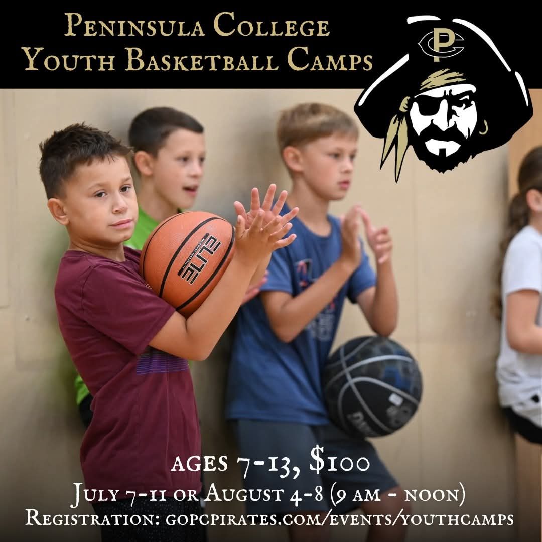 Looking ahead, Peninsula College will host youth basketball camps July 7–11 and August 4–8 from 9 a.m. to noon. The camps are open to kids ages 7 to 13, with a cost of $100 per session.
