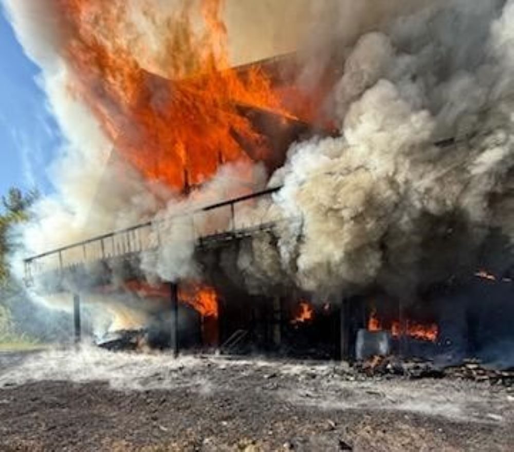 Eventually, the home and several small outbuildings were destroyed by the fire. Chief Patterson thanks residents of the area who assisted the fire district by using an excavator to gain access to burning materials.