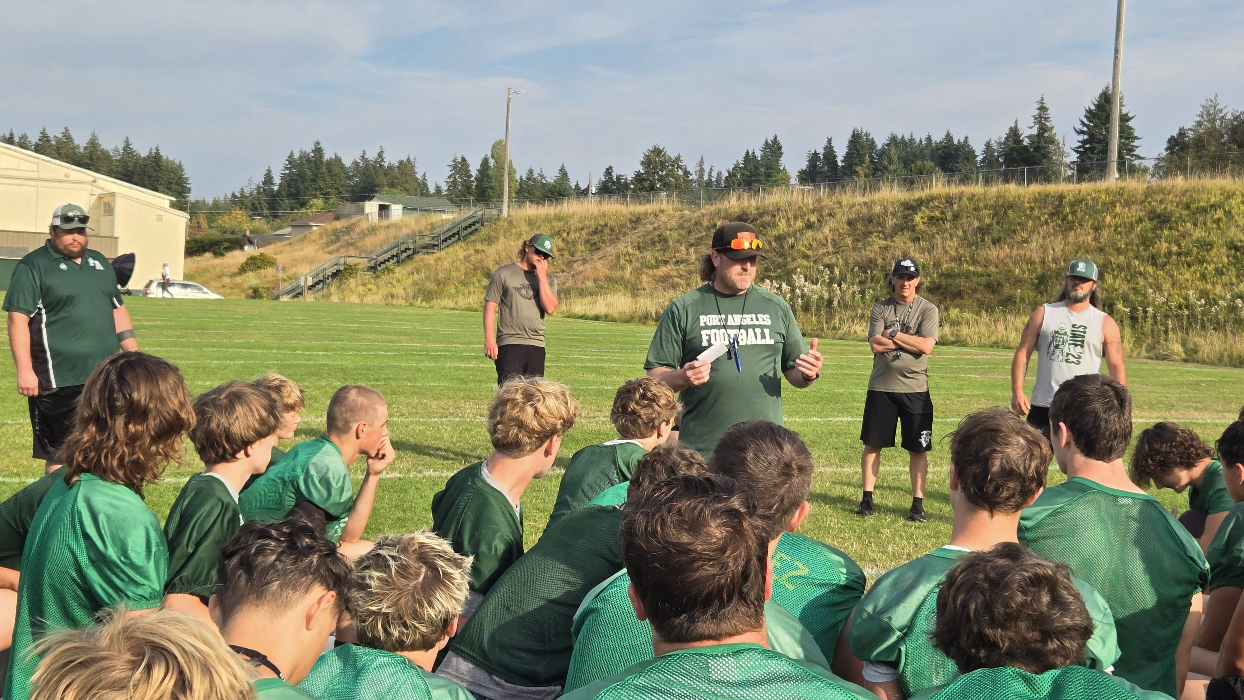 Roughrider Head football coach Dustin Clark goes over the Sequim game plan with his 1-2 football team hungry for a upset win over Sequim.