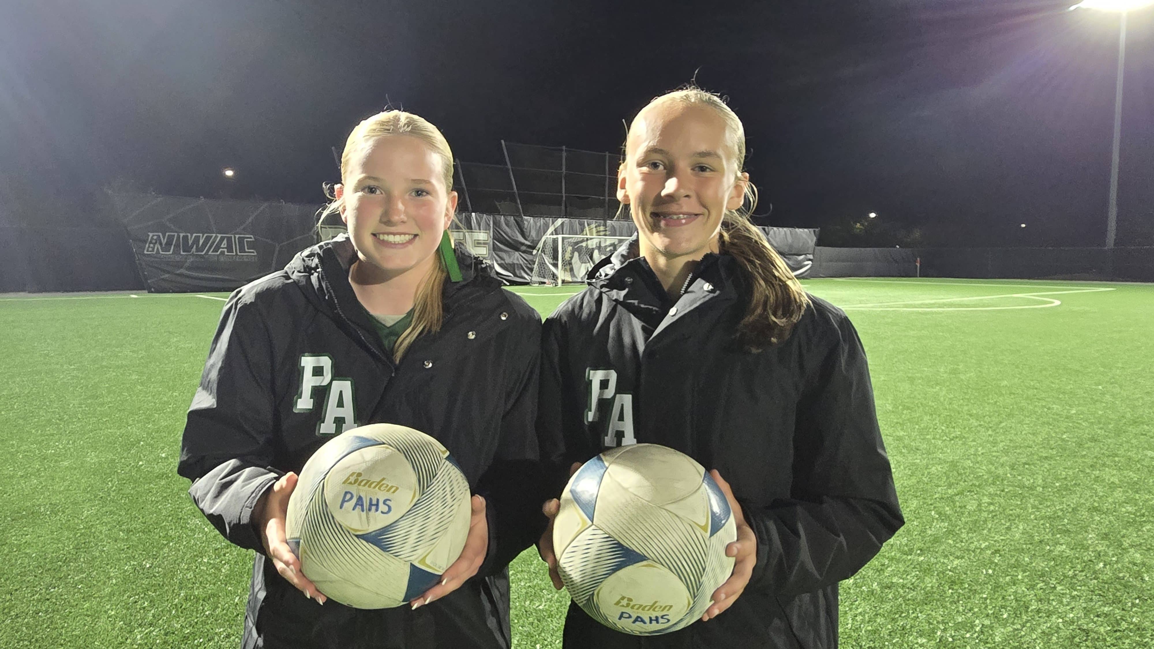 The Roughriders’ “green M&M connection” of Mariah Traband and Emma Desjardins combined for all four goals in Port Angeles’ 4-0 win over Sequim.