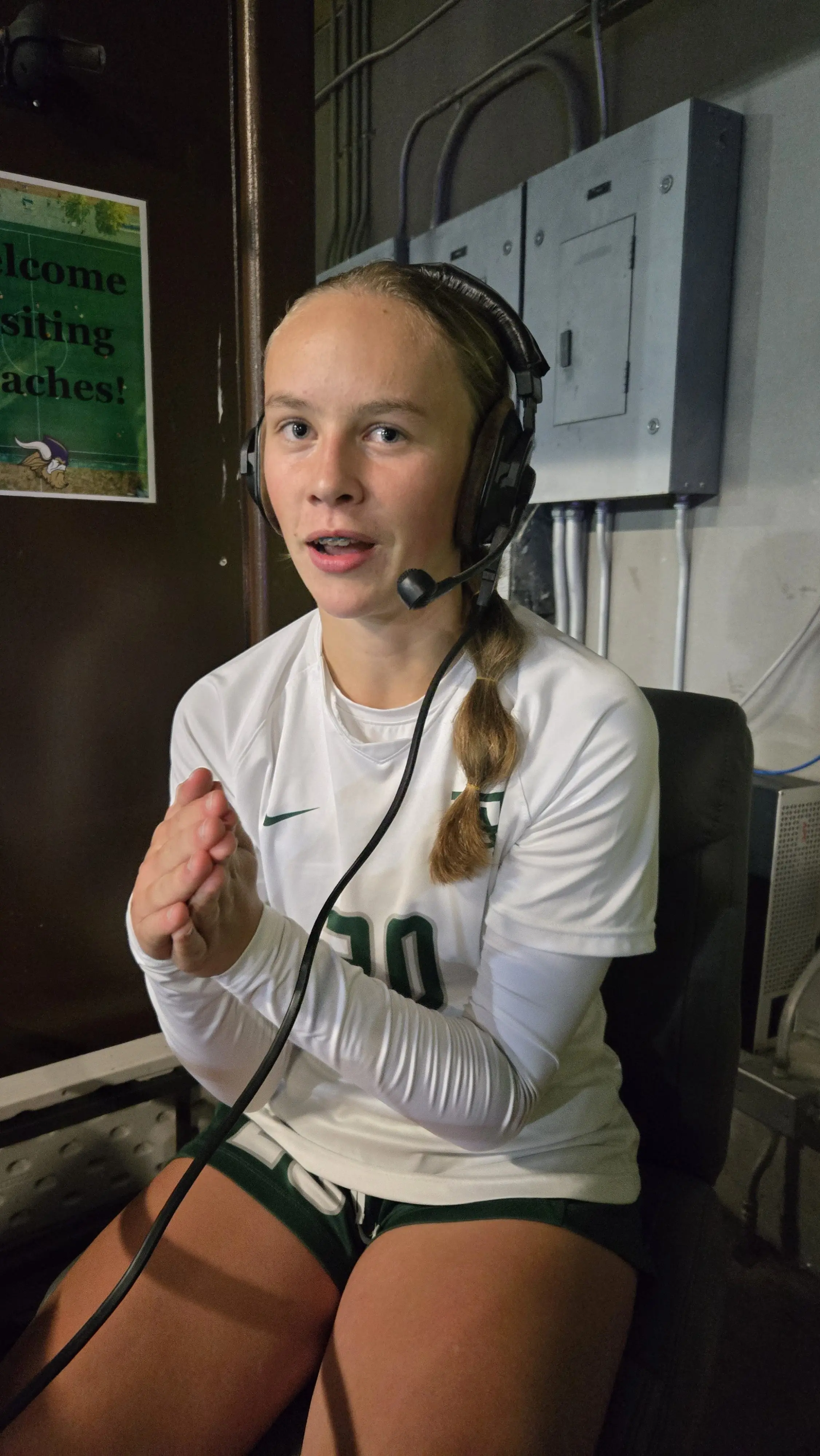 Roughrider Freshman Emma Desjardins on the KONP Newsradio post game show talked about and illustrated how she scored on her game winning penalty kick. Desjardins has 20 goals on the season.