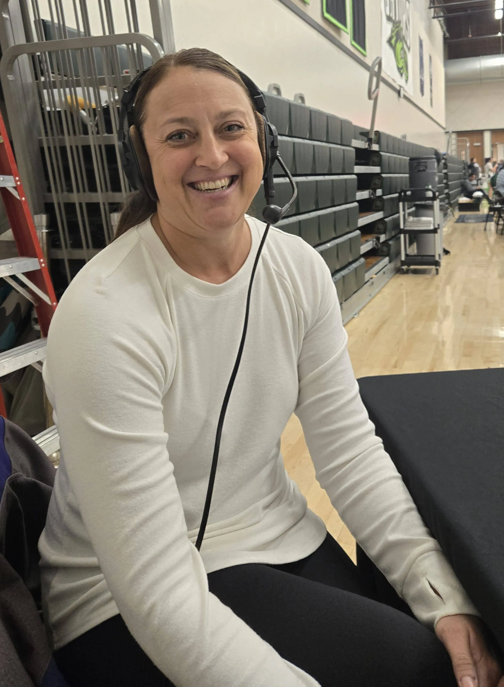 Peninsula Pirates Basketball Hall of Famer Tiffany Hoch Patrick appears on KONP Newsradio during halftime of the Peninsula–Green River women’s basketball game, discussing the evolution of girls’ and women’s basketball over the past 40 years and current challenges facing the sport.