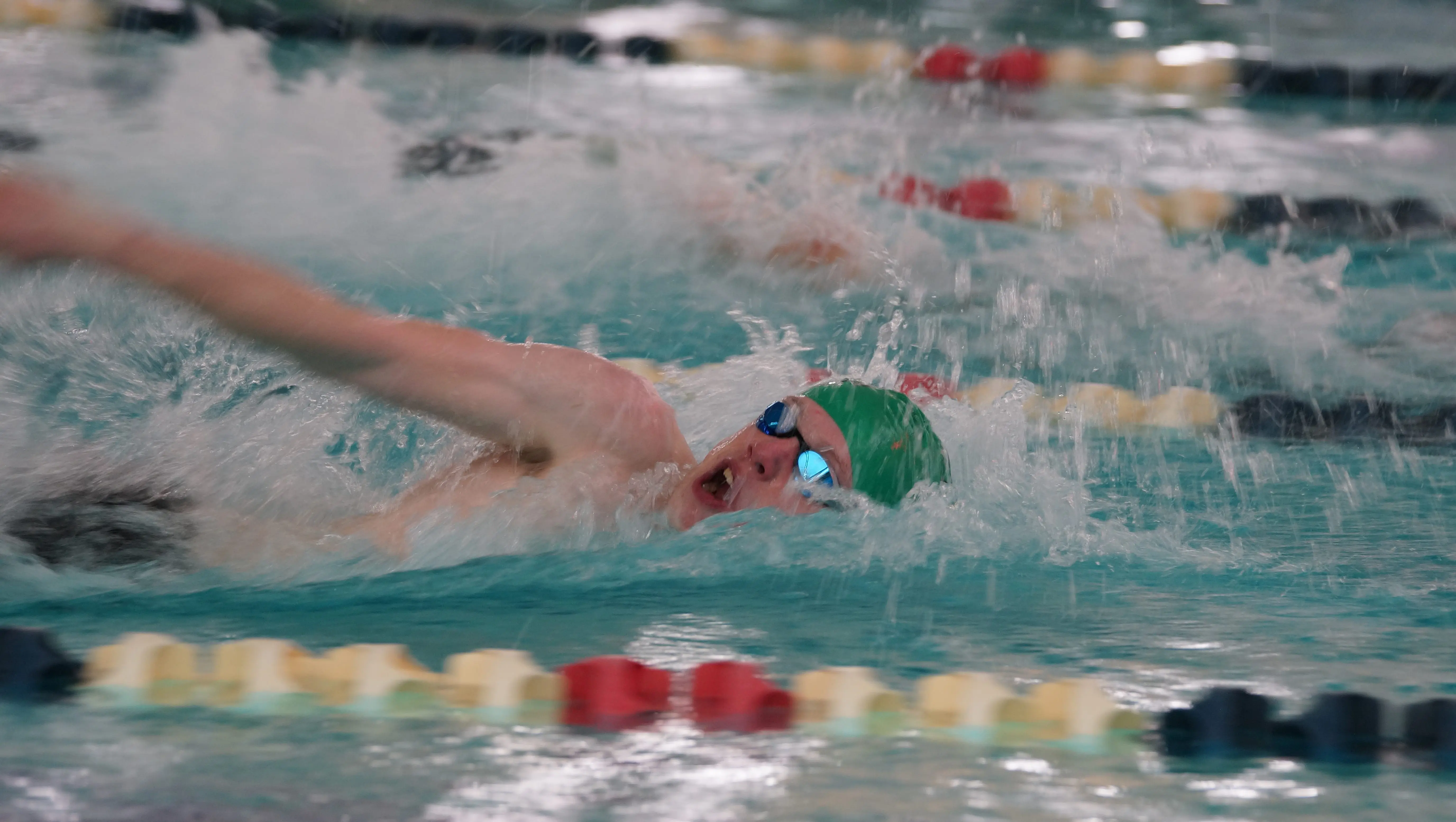 Roughrider Patrick Ross swims the anchor leg of the Riders’ 200-yard medley relay