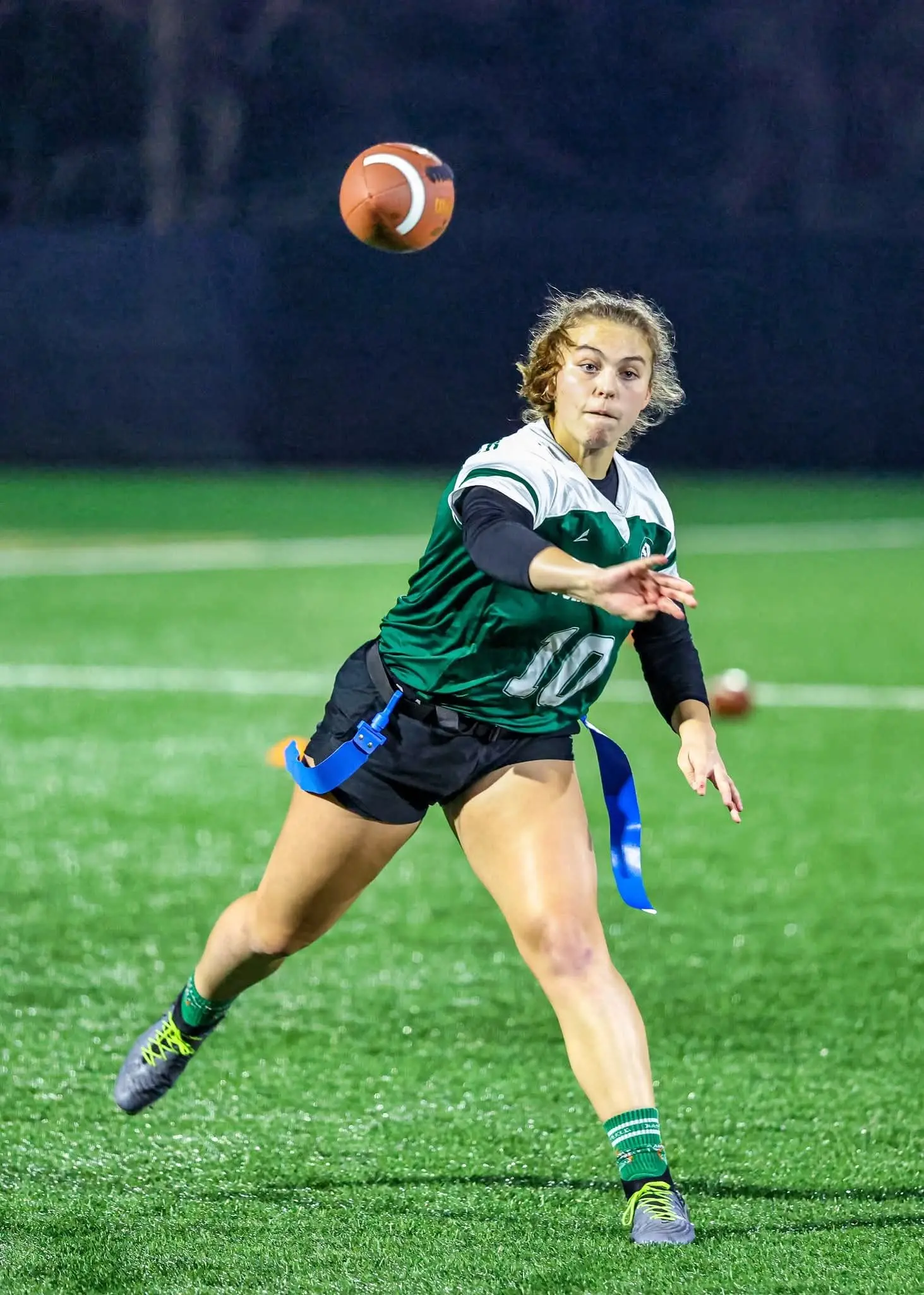 Quarterback Kennedy Rognlien and the Port Angeles Roughriders host Kingston tomorrow in the state flag football playoffs.
