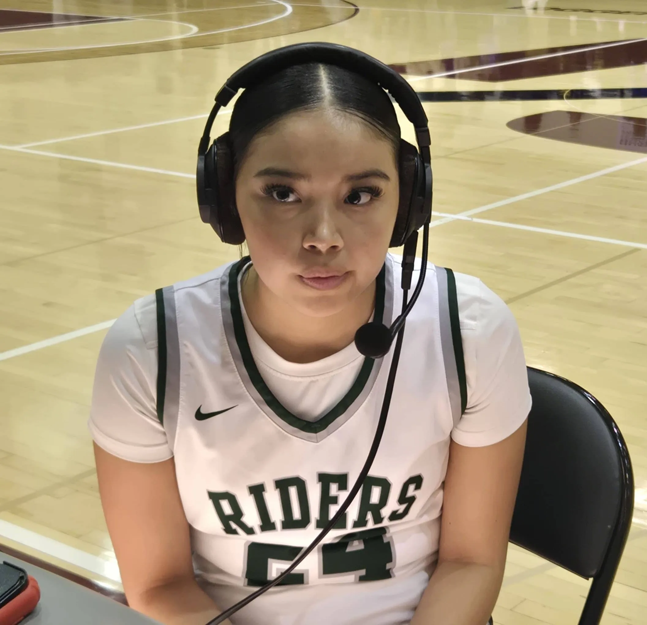 Port Angeles senior Kenzie Moses, speaking on the KONP postgame show, is one of five Roughrider seniors who helped lead the team to a 66–30 varsity record over the past five seasons.