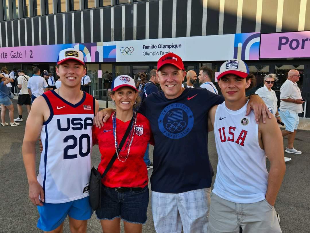 Roughrider tennis coach Brian Gunderson with his family at the tennis matches in Paris for the Summer Olympics.
