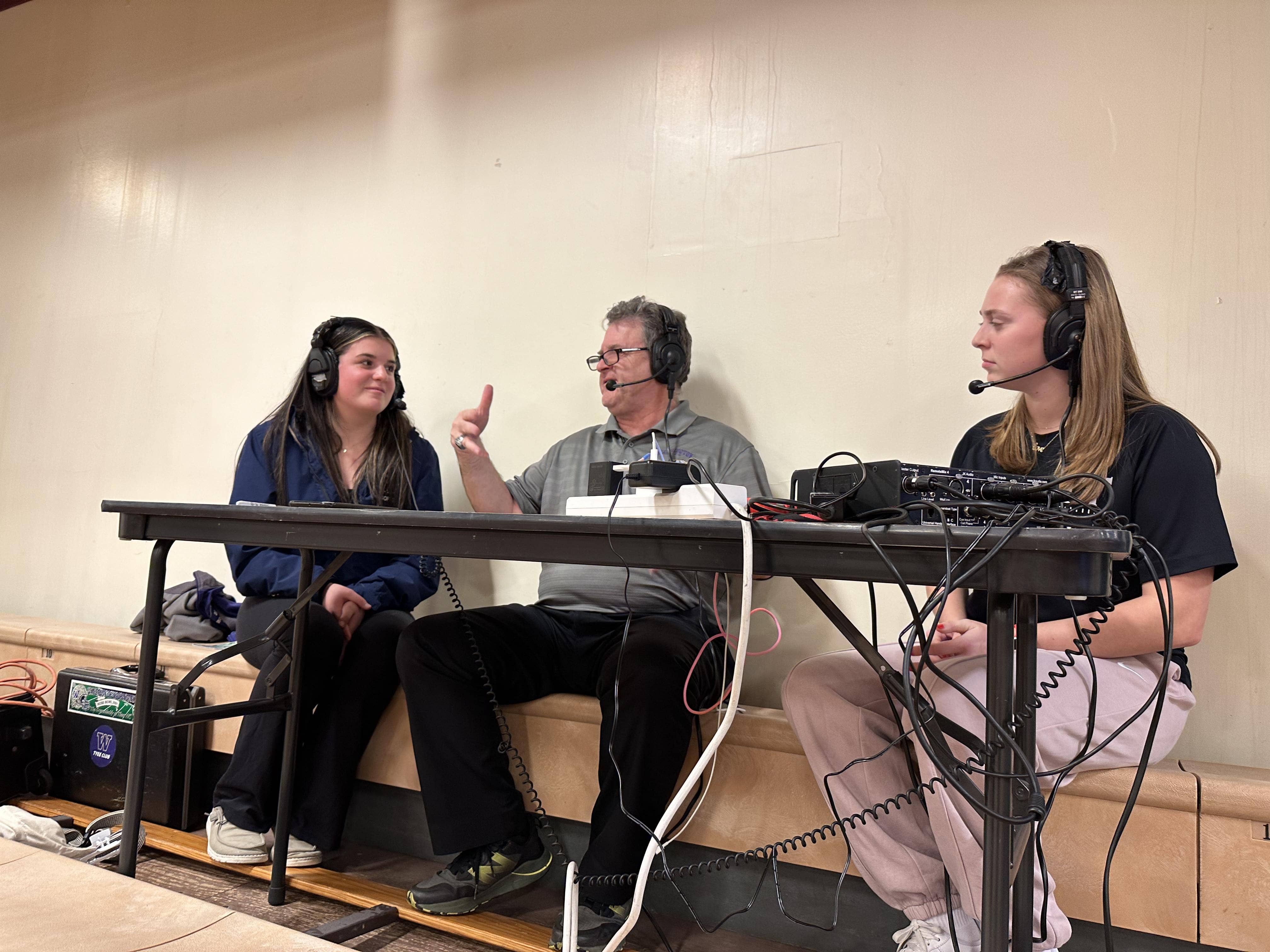 Former stand out high school fast pitch pitchers, Lainy Vig of Sequim and Teagen Clark of Port Angeles are now pitching for Skagit Valley College and joined Oly Archibald at halftime of last night’s men’s basketball game
